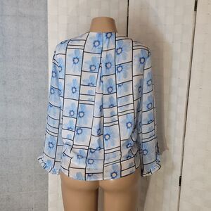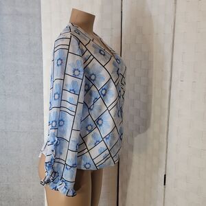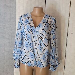 BRAND NEW ALFANI LONG SLEEVE V-NECK FLORAL EMBROIDERED DESIGN BLOUSE MULTI-COLOR PXL LIKE WHITE,BLUE AND BLACK Spend your day in chic style with this top from ALFANI designed long ruffle trim sleeve for a romantic finish Long sleeves V-neck Cross front detail made 100% polyester lining 100%polyester exterieur 100% polyester doublure 100% polyester cuerpo 100%polyester forro 100% polyester THIS ITEMS IS BRAND NEW WITHOUT TAG CHECK THE PICTURES