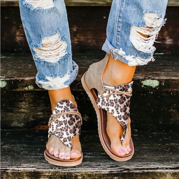 BRAND NEW AROMA LEOPARD PRINT WOMEN"S SANDAL