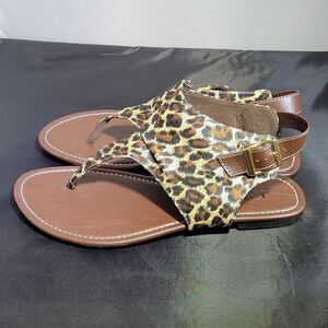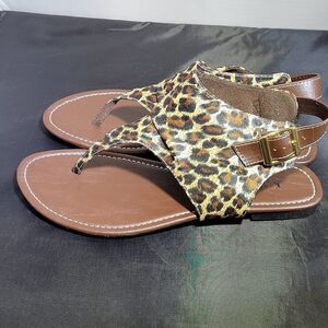 BRAND NEW AROMA LEOPARD PRINT WOMEN"S SANDAL SIZE 10 COLOR BROWN &BLACK BRAND NEW WITH TAG AND BOX CHECK THE PICTURES
