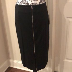 Super Stylish Pencil Skirt by Zac & Rachel with Cool thick Zipper outside front in Silver... Size Small ... this runs big I am a 4 but this feels more like a 6 FYI... Black ... looks Amazing on with white button down shirt!!! New with tag
