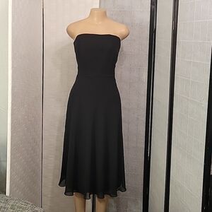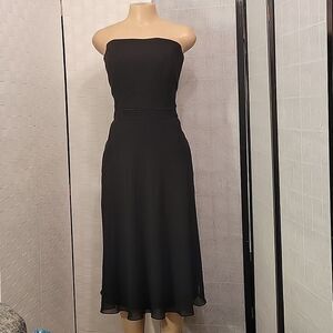 BRAND NEW CHIFFON STRAPLESS BACK ZIPPER WOMEN"S DRESS SIZE 12 COLOR BLACK MADE WITH OUT SHELL 100%POLYESTER INNER SHELL 100%POLYESTER THIS ITEMS IS BRAND NEW WITHOUT TAG CHECK THE PICTURES