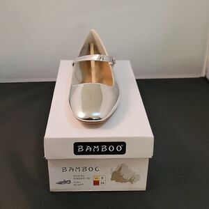 BRAND NEW BAMBOO MARY JANE STYLE CLASSIC BUCKLED STRAP ROUND-TOE FLAT SHOE  SIZE 9 COLOR  SILVER Closure Type:Easy on/off. Non-Slip Outsole Enjoy grip and durability with the anti-slip outsole that provides a noise-free experience, perfect for both indoor and outdoor activities. Occasions of Use:You can dress them for a party, wedding, travel,shopping,interview,Ballet Ankle Strap Heel High 1 cm Upper material Synthetic Toe Style Round Toe nightclub,evening party,birthday, office, and fashion show. And dress them on holiday Christmas day,Halloween day, or any festival day. Even in your daily life. Easy Matching These stylish, comfy shoes almost go with every outfit. Perfect for casual-style dresses, shorts, jeans, pants,etc. It looks great, no matter what kind of clothes you are wearing. THIS ITEMS IS BRAND NEW WITH TAG AND BOX CHECK THE PICTURES