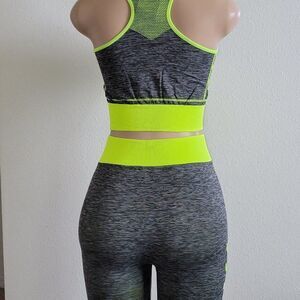 BRAND NEW BIKER SHORTS & SPORTS  BRA STRIPE SETS SIZE MEDIUM/LARGE COLOR NEON GREEN/ BLACK& GRAY MADE WITH 90%POLYESTER 10%SPANDEX THIS ITEMS IS BRAND NEW WITH TAG CHECK THE PICTURES