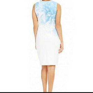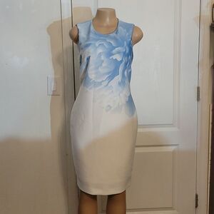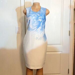 BRAND NEW CALVIN KLEIN WHITE &BLUE DRESS SIZE 8 SHORT SLEEVE DRESS LONG ZIPPER CLOSURE IN THE BACK FOR EASY SLIP ON KNEE LENGTH WITHOUT TAG BUT BRAND NEW NEVER WORN CHECK THE PICTURES