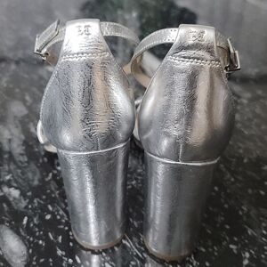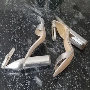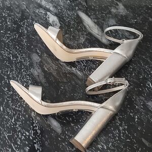BRAND NEW CIRCUS BY SAM EDELMAN BLOCK HEEL OPEN-TOE SANDAL SIZE 10M COLOR SILVER METALLIC This season's perfect heel. The block heel sandal is a wardrobe must with an elegant ankle strap and a perfect block heel. This women's block heel sandal was designed for chic comfort that will have you stepping out in confidence, no matter the occasion. Whether you're looking for a nude block heel sandal to pair with your favorite summer dress, or a bold black block heel sandal to add a touch of glam to your office look, the Yaro is serving exactly what you ordered. Wear with a slip dress for a night out on the town or with cropped trousers for a workwear refresh Heel Height 4 inches. Closure Buckle. Material: Suede, Leather, Patent, Cork, Silk, PVC, or Fabric. Insole: Synthetic. Featured in our Edelman Icons Collection.THIS IS BRAND NEW WITH TAG NO BOX CHECK THE PICTURES