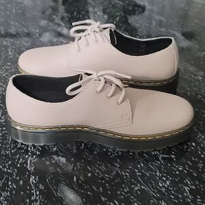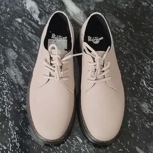 BRAND NEW DR MARTENS WOMENS ZAVALA LO OXFORD SIZE USM9 USL10 COLOR BEIGE Leather upper 3-eye lace-up shoes Signature yellow stitch & signature heel loop Leather and textile lining with a cushioning insole Air Cushioned outsole Clean away dirt using a damp cloth and allow to dry, then apply Dr. Martens Wonder Balsam, add to shoes using the sponge applicator supplied with the product.Smooth PU Coated Leather with a Matt FinishStep into edgy comfort this season with the Dr. Martens Zavala Lo women's oxford. With a leather upper and welt stitching for added flair, these lace-up oxfords are ready for taking on the streets. The AirWair cushioned insole comforts your feet while the traction outsole keeps you grounded.THIS ITEMS IS BRAND NEW WITH TAG CHECK THE PICTURES