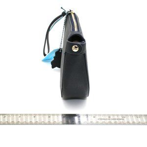 Classy dark blue, leather clutch/wristlet measuring approx 9"x6". Inside is Reese Witherspoon's traditional blue striping and leather stitched pockets to hold 3 credit cards, ID, etc. Original MSRP is $98. No defects.