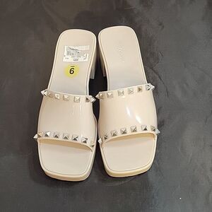 BRAND NEW FOREVER HANI STUDDED EMBELLISHMENTS DESIGN JELLY BLOCK HEEL OPEN TOE SANDAL SIZE 9 COLOR CREAM SLIP-ON STYLE HEEL HEIGHT MEASUREMENTS APPROX 2"INCHES MADE WITH ALL MAN MADE MATERIALS THIS ITEMS IS BRAND NEW WITH TAG CHECK THE PICTURES