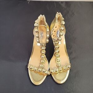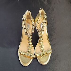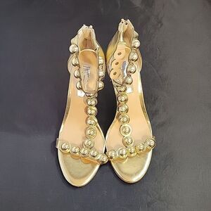 BRAND NEW I.N.C INTERNATIONAL CONCEPTS GOLD METALLIC BALLS BEADING OPEN TOE HEEL SANDAL SIZE 71/2M COLOR BACK ZIPPER MADE WITH ALL MAN MADE MATERIALS ROUND TOE HEEL HEIGHT MEASUREMENTS APPROX 4"INCHED THIS ITEMS IS BRAND NEW WITHOUT TAG CHECK THE PICTURES(FYI THIS ITEMS HAVE A TINY DAMAGE ON ONE OF THE HEEL CHECK THE PICTURES)