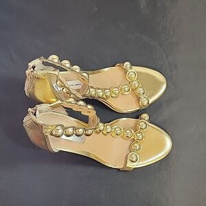 BRAND NEW I.N.C INTERNATIONAL CONCEPTS GOLD BALLS BEADING OPEN TOE HEEL SANDAL
