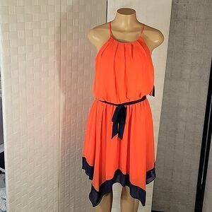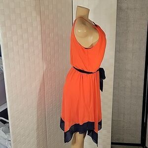 BRAND NEW IZBYER STRAPLESS ROUNDNECK LINE BUILT-IN BELT WOMEN"S DRESS SIZE XLARGE COLOR ORANGE &DARK BLUE MADE WITH 100%POLYESTER LINING 100%POLYESTER THIS ITEMS IS BRAND NEW WITH TAG CHECK THE PICTURES