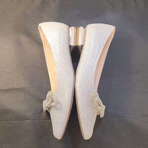 BRAND NEW JONES NEW YORK POINTED TOE WITH BOW DETAIL EMBELLISHMENTS FLAT SIZE 8M COLOR SILVER GLITTER this Quinnie by Jones New York is a stylish dress flat with an ornamental bow on the front for added style.Heel height Flat heel Pointed toeStep out in style with these elegant silver flats. Featuring a chic bow detail, these shoes are perfect for any occasion.THIS ITEMS IS BRAND NEW WITH TAG NO BOX CHECK THE PICTURES
