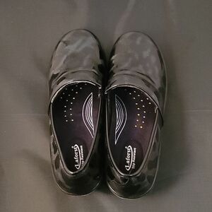 BRAND NEW LAFORST WOMENS JAMIE WAITRESS NONSLIP SLIP ON CLOG SIZE 8 COLOR BLACK &GREEN Fabric type 100% Leather Care instructions Machine Wash Sole material Rubber Outer material Leather Genuine Smooth Leather Upper EVA Flexible MidsolevSlip Resistant Outsole Removable High Density Insole You get it all in the LaForst Shoes! Comfort, fashion, and Nonslip soles!All styles feature the Memory Foam insoles for all day comfort and Nonslip rubber outsoles for resilience, flexibility, and safety.THIS ITEMS IS BRAND NEW WITH TAG AND BOX CHECK THE PICTURES