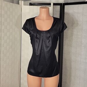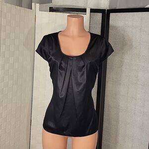 BRAND NEW LIZ CLAIBORNE CAP SLEEVE SILKY BLOUSE ROUND NECK PLEATED CASUAL ELEGANT TOP SIZE LARGE COLOR BLACK MADE WITH 100%POLYESTER THIS ITEMS IS BRAND NEW WITH TAG CHECK THE PICTURES
