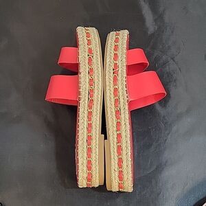 BRAND NEW MARC NEW YORK ANDREW MARC 2 STRAP BAND SLIDES OPEN TOE SANDAL SIZE 8 1/2 COLOR RED MADE WITH MAN MADE UPPER EMPEIGNE SYNTHETIQUES MANMADE LINING DOUBLURE ARTIFICIEL THIS ITEMS IS BRAND NEW WITH TAG CHECK THE PICTURES