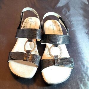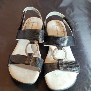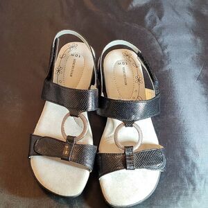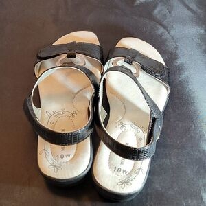 BRAND NEW MEMORY FOAM COLLECTION ANKLE VELCRO STRAP CLOSURE SANDAL SIZE 10W COLOR BLACK ALL MANMADE UPPERS MATERIALS NO TAG NO BOX BUT NEW NEVER WORN CHECK THE PICTURES