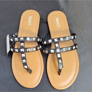 BRAND NEW MIXIT 3-STRAPS THONG WOMEN"S STUDDED DETAILING ROUND TOE SAND…