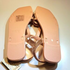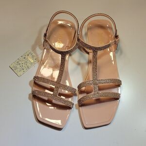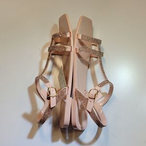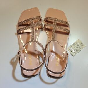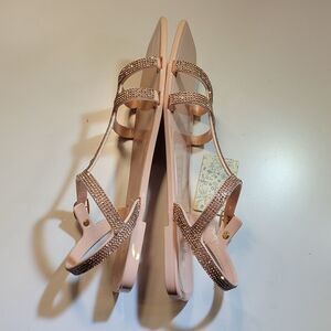 BRAND NEW MUDD RHINESTONES EMBELLISHMENTS ANKLE STRAP QUARE TOE DOUBLE STRAP WOMEN"S SLIP-ON SANDAL SIZE 9 COLOR PEACH MADE WITH ALL MAN MADE MATERIALS THIS ITEMS IS BRAND NEW WITH TAG CHECK THE PICTURES