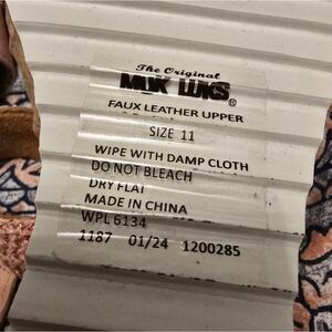 BRAND NEW MUK LUKS® WOMEN'S WINONA WEDGE SANDAL SIZE 11 COLOR PINK Sole material Ethylene Vinyl Acetate Outer material Synthetic Closure type Slip On Faux Leather Upper Cushioned Footbed Faux Cork WedgeWoven Strap Detail with SparkleStep into the season with confidence and sparkle in MUK LUKS Women's Wendy Wedge Sandals. Crafted with a faux leather 2-Strap upper, a cushioned footbed and slingback styling provides a secure comfortable fit without compromising on style. secure and stylish fit. The adjustable buckle detail adds a touch of sophistication, allowing you to customize your comfort effortlessly.heel high measurements approximately 21/2"inched MUK LUKS® Women's Winona Wedge Sandal SOLE 85% PVC, 15% Rubber INSOLE 100% Cork UPPER 100% Synthetic LINING: 100% Polyester Wipe with damp cloth. THIS ITEMS IS BRAND NEW WITH TAG NO BOX CHECK THE PICTURES