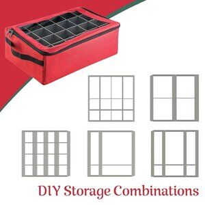ORNAMENT STORAGE - This rectangular storage tote has adjustable dividers that can be arranged to create up to 48 individual compartments. Your Christmas décor will be protected.