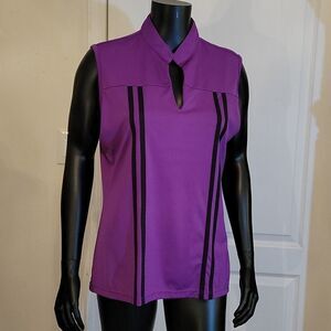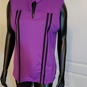 BRAND NEW PLAY DRY BY GREG NORMAN WOMEN"S SLEEVELESS SHIRT SIZE XLARGE COLOR PURPLE &BLACK LINE IN THE FRONT NO TAG BUT NEW NEVER WORN CHECK THE PICTURES