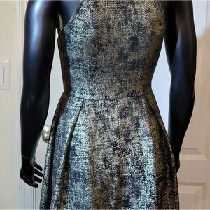 BRAND NEW SOPRANO METALLIC GOLD &BLACK SPAGHETTI STRAP SLEEVELESS DRESS SIZE SMALL ROUNDNECK KNEE LENGTH DRESS SIZE SMALL MADE WITH 95%POLYESTER 5%SPANDEX PLEATED BODICE THIS ITEMS IS BRAND NEW WITHOUT TAG CHECK THE PICTURES