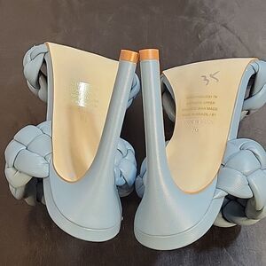 BRAND NEW STEVE MADDEN WOMEN"S CHUNKY BRAIDED STRAP DETAILS KENLEY HEELED SQUARE TOE SANDAL SIZE 5 1/2M COLOR BLUE with 100% leather synthetic upper balance man made heel height measurements approximately 4"inched As one of the most iconic brands in the footwear industry, Steve Madden offers the trend you're looking for at an accessible price point.Steve Madden Style Type Dress Sandals Collection Steve Madden Express your individuality in the daring and trendy Kenley sandals by Steve Madden. This shoe is crafted with vegan leather uppers and features a dual braided straps across vamp. It has a slip on design for easy on the go wear and man-made outsole with 4.5" heel.
