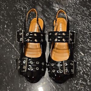 BRAND NEW Steve Madden KIDS Girls' J-Grayaa SLINGBACK SANDALS SIZE 1 COLOR BLACK Introduce your child to style and comfort with kids' J GRAYAA These stylish slingback flats feature a trendy square back with grommets and buckles for an edgy touch. The perfect combination of fashion and practicality, these flats will keep your child's feet comfortable all day long.5 inch heel height Vegan leather upper material Vegan leather lining Vegan leather sock Synthetic sole Steve Madden, the Girls' J-Grayaa Slingbacks feature Synthetic patent upper Wide grommet straps over top and toe with oversized buckle hardware Slip-on style with slingback strap Synthetic lining Rubber blend outsole THIS ITEM IS BRAND NEW WITH TAG NO BOX CHECK THE PICTURES