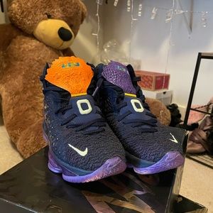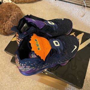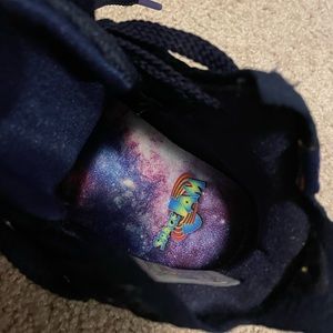 Orange, purple and navy Nike KDs . Cool Space Jam design with orange and purple shoe tongues