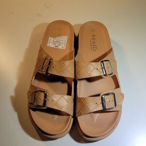 BRAND NEW WELLS COMFORT CHUNKY PLASFORM SOLE WEDGE OPEN TOE WIDE STRAP SANDAL SIZE 10 COLOR CREAM MADE WITH ALL MAN MADE MATERIALS PLASFORM HEIGHT MEASUREMENTS APPROX 2"INCHES BRAND NEW WITH TAG CHECK THE PICTURES (NO LOW BALL OFFERS PLEASE)