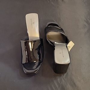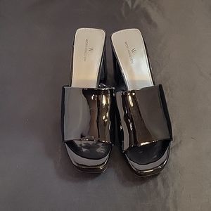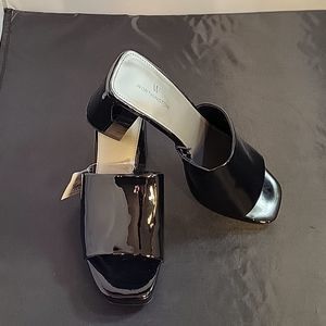 BRAND NEW WORTHINGTON WOR LAUREL WOMEN"S SINGLE BAND HIGH HEEL SANDALS SIZE 7.5 MEDIUM COLOR GLOSSY BLACK OPEN SQUARE TOE BLOCK HEEL  HEIGHT MEASUREMENTS APPROX 3.15"INCHES MADE WITH ALL MAN MADE MATERIALS THIS ITEMS IS BRAND NEW WITH TAG CHECK THE PICTURES