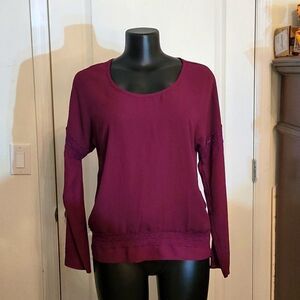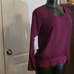 BRAND NEW XHILARATION WOMEN"S LONG SLEEVE BLOUSE COLOR BURGUNDY SIZE S/P ROUNDNECK TOP SHIRT EMBROIDERY DESIGN IN THE LONG SLEEVE AND EMBROIDERY DESIGN IN THE BOTTOM OF THE BLOUSE AND IN THE BACK WITHOUT TAG BUT BRAND NEW NEVER WORN CHECK THE PICTURES