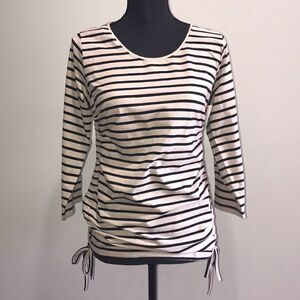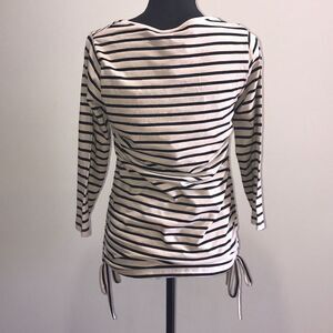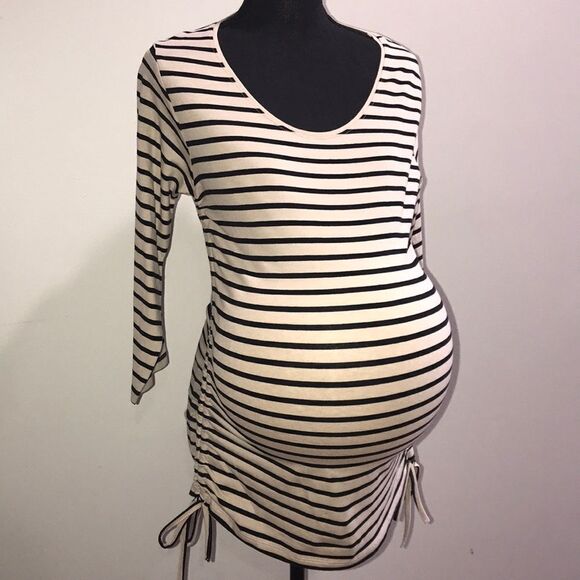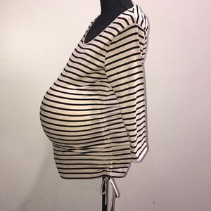 I have 2 new maternity tops! The med has tags and the xl is new but missing its tag. These tops have 3/4 length sleeves and are made of 95% cotton and 5% spandex. They feature laces on the sides for extra room while your belly grows!