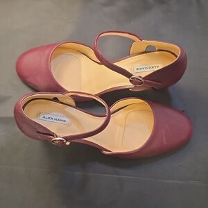 BRAND NEW ALEX MARIE LEATHER PATRICE CLASSIC MARYJANE ANKLE STRAP PUMPS SIZE 9.5M COLOR BURGUNDY round toe low block heel Elevate your style with these stunning Aldo red heels, perfect for adding a pop of color to any outfit. The sleek design and vibrant hue make them ideal for both professional and casual occasions. Crafted with attention to detail, these heels offer both comfort and sophistication.heel height measurements approximately 3"inched THIS ITEMS IS BRAND NEW WITHOUT TAG CHECK THE PICTURES