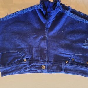 BRAND NEW AMBRIACE MILD DISTRESSED DUKE DENIM SHORT SIZE SMALL COLOR BLUE WITH 96% Cotton, 4% Spandex Frayed edges Fringe Solid Mid rise waist APPROX Measurements