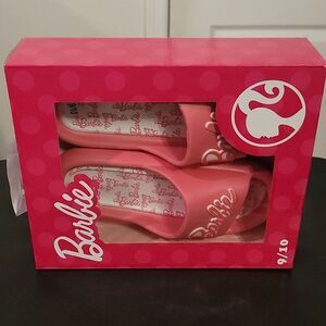 BRAND NEW BARBIE MATTEL BRIGHT PINK LOGO WOMENS FLIP FLOP SLIDE SANDAL SIZE 9/10 COLOR PINK Sole material Rubber Outer material Rubber Closure type Slip On Officially licensed Barbie apparel Exclusive design High quality comfort rubber material Great gift idea!Officially licensed Barbie Bright Pink Logo Women's Flip Flop Slide Sandals. Featuring the iconic "Barbie" logo on bright pink, these flip-flop slide sandals are made from comfortable materials to keep you stylish and cozy.Stylish pink slide sandals with Barbie logo. Perfect for casual wear.THIS ITEMS IS BRAND NEW WITH TAG AND BOX CHECK THE PICTURES