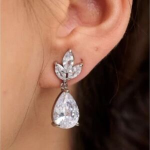 BRAND NEW BELIEVE BY BRILLIANCE CUBIC ZIRCONIA DROP EARRINGS EARRINGS COLOR SILVER PLATED Sparkly chic wedding earrings featuring a pretty cubic zirconia crystal leaf design and a large tear-drop crystal. Perfect for brides or bridesmaids.
