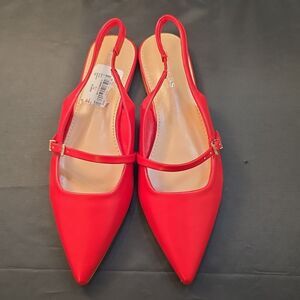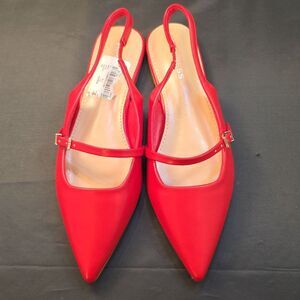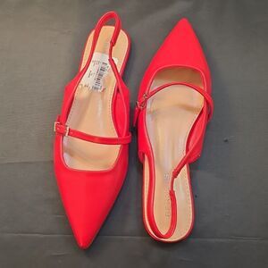 BRAND NEW BERNESS ROBIN POINTED TOE SLINGBACK WOMENS FLAT SIZE 7 COLOR RED all man-made materials lining man-made material adjustable ankle buckle strap closure Step out in style with these chic red slingback flats. Perfect for any occasion, these shoes offer both comfort and elegance. THIS ITEMS IS BRAND NEW WITH TAG NO BOX CHECK THE PICTURES