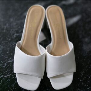BRAND NEW CHINESSE LAUNDRY ELEGANT WOMEN's BLOCK HEEL SQUARE TOE SANDAL SIZE 8/38.5M COLOR WHITE.all man-made materials lining man-made materia man-made upper Step out in style with these elegant block heel sandals. Perfect for any occasion, these shoes offer both comfort and sophisticationthis block heel bring a lasting appeal to the effortless slip-on design oh the sandal from Chinese Laundry Step out in style with these elegant black slide sandals. Perfect for any occasion, these shoes offer both comfort and sophistication.heel height measurements approximately 1-3/block heel THIS ITEMS IS BRAND NEW WITH TAG NO BOX CHECK THE PICTURES(FYI THE FIRST PICTURES IS JUST A MODEL TO SHOW WHAT THE SANDAL LOOK ON CHECK THE PICTURES)