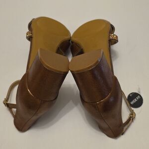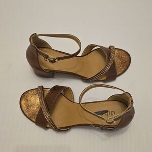 BRAND NEW DIBA LEATHER HEELS with CRISSCROSS STRAS SANDAL SIZE 8W COLOR BROWN These Diba heels feature a rich brown leather one strap rhinestones construction with a stylish crisscross strap design and secure ankle buckle closures. The open-toe style and elegant heel make them a versatile choice for both casual and formal occasions.all man-made materials lining man-made material open toe low block heel adjustable buckle strap closure heel height measurements approximately 21/2"inched THIS ITEMS IS BRAND NEW WITH TAG NO BOX CHECK THE PICTURES OF THE PICTURES