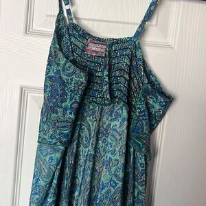 BRAND NEW - From Paris - Beautiful Pattern Dress - Greens & Blues - Small / Med - Besutiful Adjustable Straps - Never Worn - Form Fitting Top - High Low Dress 🤍