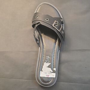 BRAND NEW JESSICA CARLYLE WOMENS STRAPPY DOME-STUD EMBELLISHED SANDAL SIZE 6 COLOR BLACK& SLIVER round open toe Step out in style with these chic red slide sandals. Perfect for any casual outing, these sandals offer both comfort and fashion. THIS ITEMS IS BRAND NEW WITH TAG NO BOX CHECK THE PICTURES