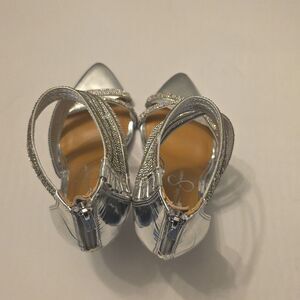 BRAND NEW JESSICA SIMPSON RHINESTONE STRAPPY HEELS SANDALS SIZE 8M COLOR SILVER all man-made materials lining man-made material cut out design Heel Step out in style with these elegant silver strappy heels. Perfect for any occasion, these shoes offer both comfort and glamour. The shimmering silver design adds a touch of sophistication to your outfit.heel height measurements approximately 4"inched THIS ITEMS IS BRAND NEW WITH TAG NO BOX CHECK THE PICTURES