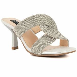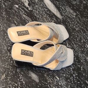 BRAND NEW JONES NEW YORK HEELS WITH CRISSCROSS STRAPS SANDAL SIZE 6M COLOR SILVER GLITTER METALLIC The Ebbo by Jones New York is a stylish wedge sandal that is perfect for an evening out on the town.Kitten heel 2" Square toe Slip-on closure Memory foam comfort in insole Outsole manmadeUpper Manmade, Lining Manmade Trim Manmade Glamorous slip-on sandals featuring a stunning twisted rhinestone strap design. The metallic silver finish adds sophistication, while the mid-height heel ensures comfort and style. Perfect for special occasions and evening events, THIS ITEMS IS BRAND NEW WITH TAG. NO BOX CHECK THE PICTURES(FYI, THE FIRST PICTURES IS JUST A MODEL TO SHOW WHAT THE SANDAL LOOK ON CHECK THE PICTURES)