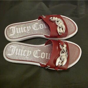 BRAND NEW JUICY COUTURE YENNIFER-2 CHAIN LINKING PEARL SLIDER SIZE 6M COLOR BURGUNDY This is a pair of Juicy Couture The sandals feature a slip-on style with a bow design adorned with rhinestones on the side. They have a flat heel height, making them comfortable for casual wear during the summer, fall, and spring seasons. The lightweight and breathable design, along with the foam insole, ensures comfort for all-day wear with comfort this sandals also showcase the Juicy Couture logo, adding a touch of branded style to your outfit.THIS ITEMS IS BRAND NEW WITH TAG NO BOX CHECK THE PICTURES