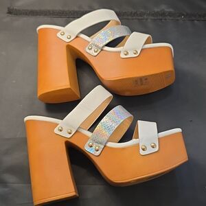 BRAND NEW KAYLEEN BY LOS ANGELES THREE STRAPS BLOCK -HEEL SQUARE TOE SANDAL SIZE 71/2 COLORBLOCK GLITTER SILVER & WHITE Step out in style with 's elegant women's sandals. Featuring a chic white design with a shimmering silver accent, these sandals are perfect for any occasion.all manmade material lining upper balance man made materials heel height measurements approximately 5"inched with 2"inched platform THIS ITEMS IS BRAND NEW WITH TAG NO BOX CHECK THE PICTURES