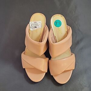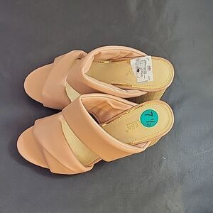 BRAND NEW KAYLEEN DOUBLE STRAP BLOCK HEEL SANDAL SIZE 71/2 COLOR TAN MADE WITH ALL MAN-MADE MATERIALS HEEL HEIGHT MEASUREMENTS APPROX 3"INCHES THIS ITEMS IS BRAND NEW WITH TAG CHECK THE PICTURES