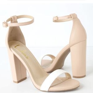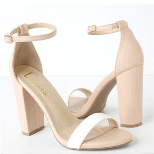 BRAND NEW LULU'S TAYLOR CHUNKY HEEL SANDALS SIZE 11 COLOR TAN & WHITE Taylor Light Nude and White Color Block Ankle Strap Heels Elevate your look with Lulu's stylish heels, featuring a chic tan and white colorcombination. The minimalist two-strap design and chunky cylindrical heel offer both elegance and stability, making them perfect for formal occasions.No one does it quite like the Lulus Taylor Light Nude and White Color Block Ankle Strap Heels! Whether you choose to dress them up or down, these sleek vegan leather single sole heels will stun with their contrasting white toe strap, and adjustable ankle strap ( gold buckle). Details Man made materials.4" wrapped block heel. THIS ITEMS IS BRAND NEW WITH TAG NO BOX CHECK THE PICTURES