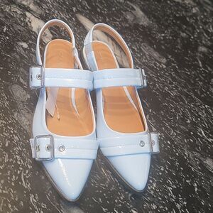 BRAND NEW MADDEN GIRL VICTORY STYLISH SLINGBACK FLAT SIZE 7M COLOR LIGHT BLUE Step out in style with these chic blue slingback flats. Perfect for any occasion, these shoes offer both comfort and elegance.adjustable buckle closure