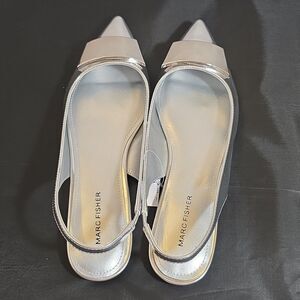 BRAND NEWMARC FISHER SLINGBACK POINTED TOE WOMENS FLAT SIZE 10M COLOR SILVER this Slingback Pointy Toe Dress Pumps Patent Show off your sleek style in the Marc Fisher Slingback dress pumps. It features slingback strap and a stylish pointy toe. The Arordes will add elegance to any outfit Designed for the modern woman, Marc Fisher Footwear provides statement shoes for every occasion.Step out in style with these Marc Fisher silver slingback flats. Perfect for any occasion, these shoes offer both elegance and comfort.THIS ITEMS IS BRAND NEW WITH TAG NO BOX CHECK THE PICTURES(FYI THE FIRST PICTURES IS JUST A MODEL TO SHOW WHAT THE SANDAL LOOK ON CHECK THE PICTURES)